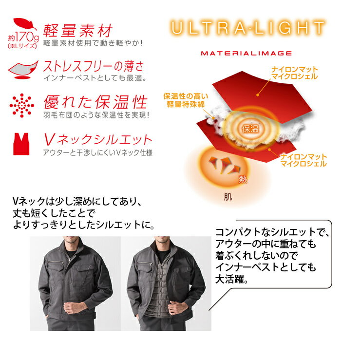 メーカーGLADIATOR CO-COS コーコス サイズ規格SS / S / M / L / LL / 3L / 4L / 5L 素材マットマイクロシェルナイロン100%※(中綿)ポリエステル100% カラー1 ネイビー / 3 グレー / 13 ブラック / 14 ブラウン 商品説明インナーベストとしてもおすすめのVネック仕様防寒ベスト。