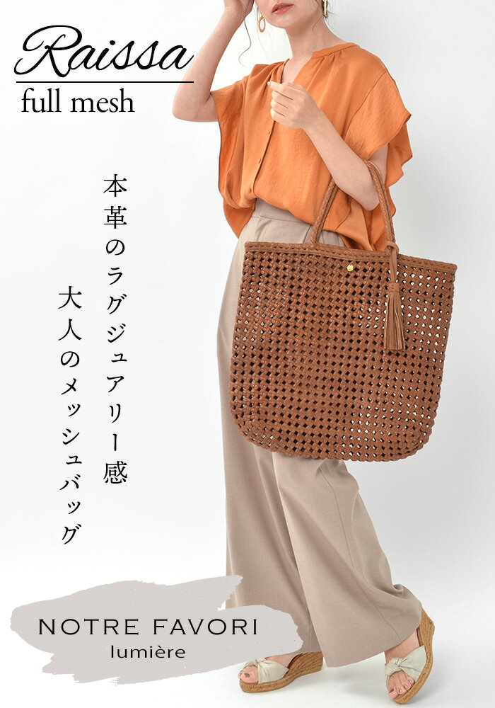 【NF公式】【ハンドメイド製品】 本革 メッシュ トートバッグ かごバッグ 【ライザ・フルメッシュ花結び編み】 レディース 大きめ 大容量 カゴ A4 通勤 メッシュバッグ 本革バッグ 革 レザー バッグ 花結び編み 花編み 石畳編み