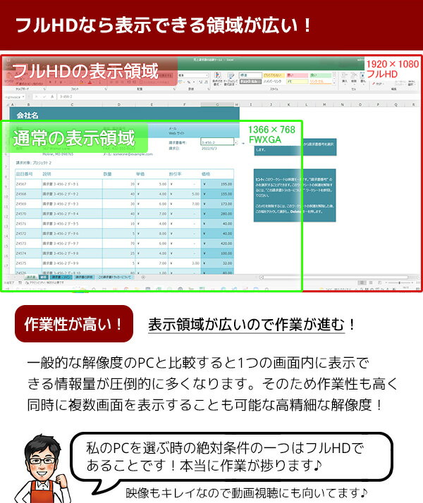 マイクロソフト版と同じ保存形式も選べるので、相互利用も安心!フルHD大画面&無線マウス付きで作業効率バツグン!店長おまかせ大画面ノート! 処理能力の高い第4世代 Corei5に余裕の8GBメモリ、高速起動のSSDでストレスフリー! 高解像度で複数ウィンドウを開いても快適で、今なら新品の無線マウス付きでさらに快適! 「買ってからも安心」、全力サポートのPCエコで是非ご検討下さい。