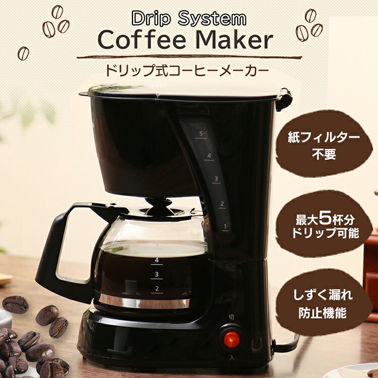 ■商品サイズ(cm)※コーヒーサーバー含む本体:幅23.5×奥行15×高さ26.5■商品重量約900g■定格電源AV100V、50/60Hz■定格消費電力600W■ドリップ容量650ml■電源コード長さ約1.2m■保温機能付き■付属品本体、メッシュフィルター、計量スプーン、コーヒーサーバー、ドリッパー、取説最大5杯分ドリップできるコーヒーメーカーです。
