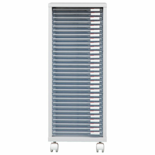 ●商品サイズ(cm):幅約28.9×奥行約35×高さ約70(キャスター取り付け時) ●引出内寸(cm):超浅型:幅約23×奥行約32.1×高さ約1.4 ●重量:約12.9kg ●引出し仕様:超浅型30段 ●耐荷重:超浅型引出し:0.5kg、全体:15kg ●材質 本体:プリント化粧紙パーティクルボード 引出:スチロール樹脂 キャスター:ポリプロピレン樹脂 ●グリーン購入法適合商品 【関連商品】★