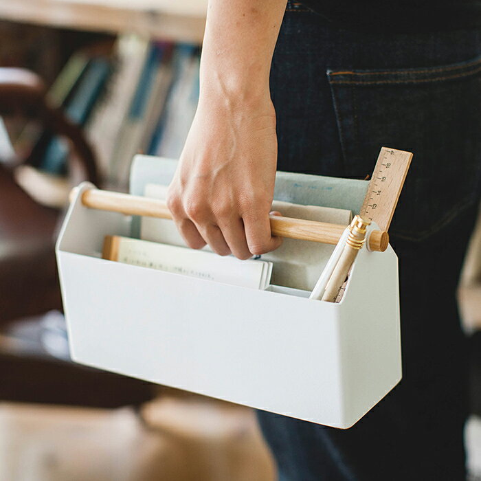 DMやペンなどを一括収納 「ペン&レタースタンド トスカ」は、天然木のハンドルとホワイトスチールの組み合わせがおしゃれな収納ボックス。