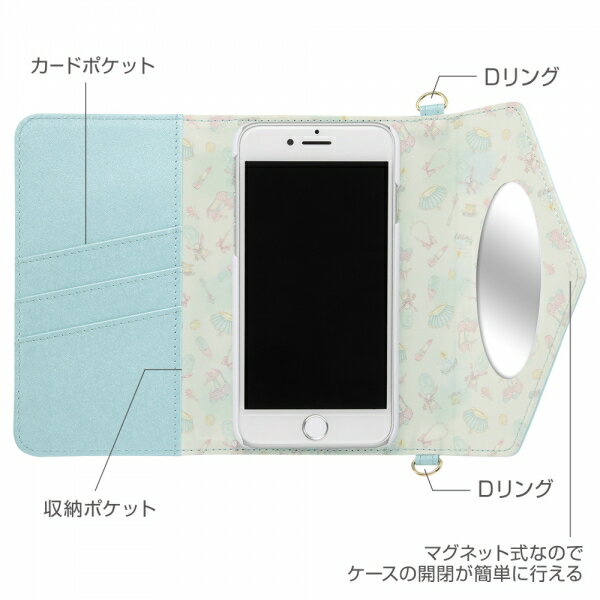 ディズニープリンセスのモチーフをあしらった手帳型ケース。