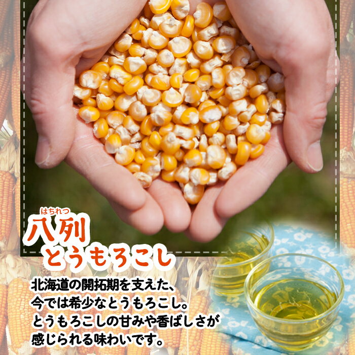 現在では穀物用のとうもろこしの品種よりも、 糖度が高いとうもろこしの品種が主流となり、 栽培農家がほとんど減ってしまったため、 優しく素朴な甘さをもつ八列とうもろこしは、 とても希少な品種となっています。