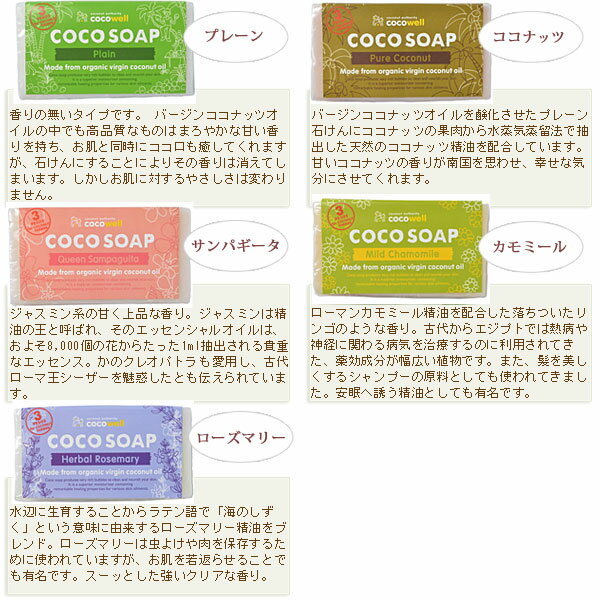 ほのかに甘いココナッツの香り/アロマの香りなど全5種類【Ciao!スキンケア/コスメ館】【あす楽対応】ココソープは最高級のバージンココナッツオイルを贅沢に使用した洗顔石鹸です。