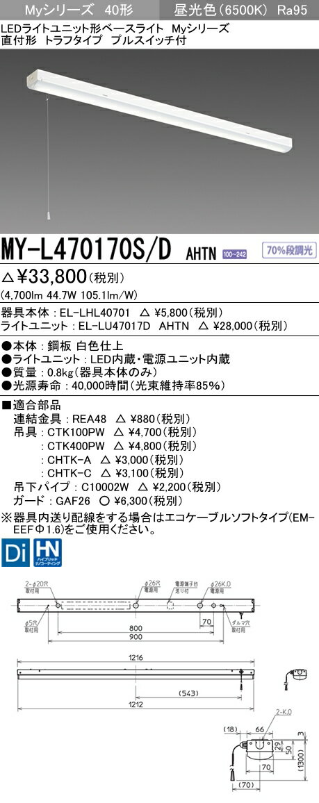 【最安値挑戦中!最大25倍】三菱 MY-L470170S/D AHTN LEDライトユニット形ベースライト 直付形 トラフ 高演色タイプ 固定出力 昼光色 受注生産品 [§]