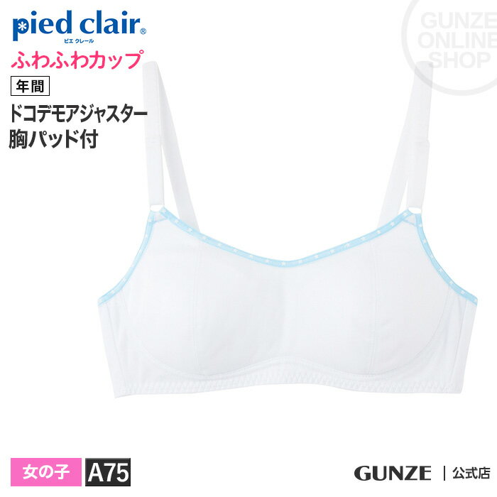 グンゼ pied clair 綿混 ファーストブラ アジャスター付 A60〜A75 (子供 下着 キッズ ジュニア インナー ブラジャー 女の子 白 スクール)