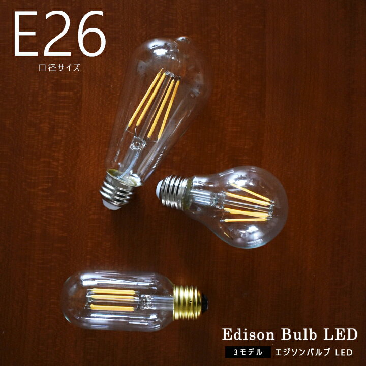 エジソンバルブ LEDタイプ E26エジソンランプ LED電球口金サイズ:E263デザイン展開エジソン電球 電球 ノスタルジック レトロ シック モダン 暗め おしゃれ 北欧 寝室 やさしい かっこいい カフェ バー 照明 ライト
