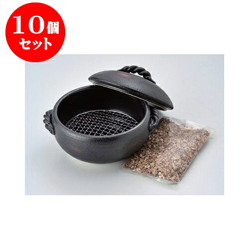 10個セット☆ 民芸コンロ ☆黒7号燻製鍋 (金網・チップ付) [ 23.5 x 20.5 x 16.5cm 2100g ] [ 料亭 旅館 和食器 飲食店 業務用 ]