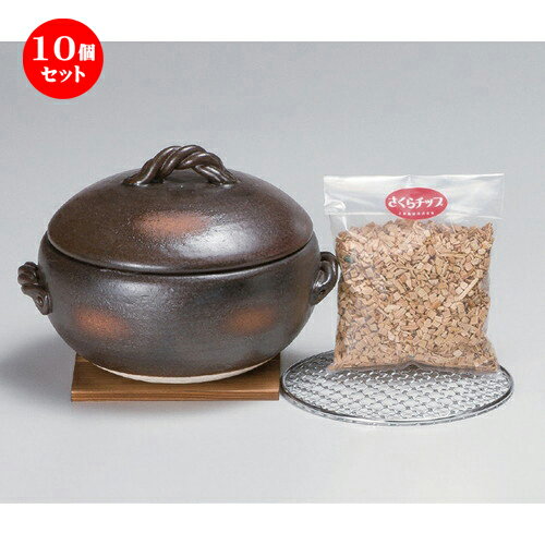 10個セット 蒸し鍋 くんせい鍋 [20.5 x 18 x 20cm 身10cm アミ・桜チップ付] 直火 【料亭 旅館 和食器 飲食店 業務用】