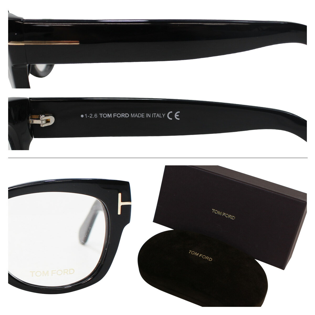 ハリウッドスターやミュージシャンなど、多くのセレブが愛用しており、テンプルからレンズにかけて施されている「T」アイコンはトムフォードの特徴である。