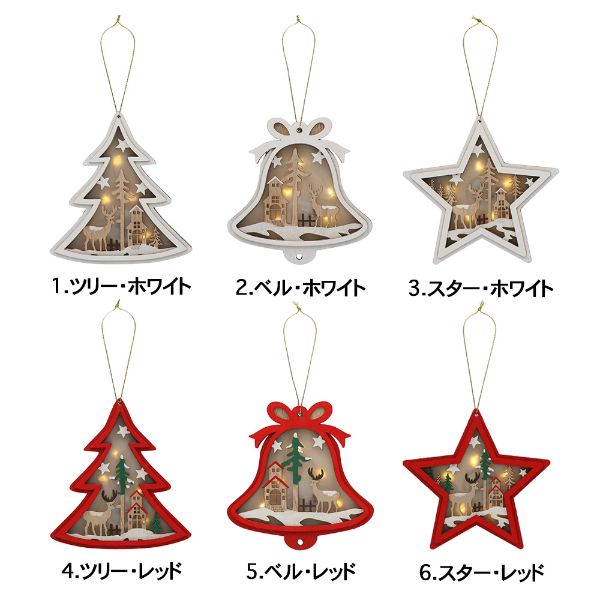 ◎サイズ/ツリー・ホワイト: H140xW130xD15mm ベル・ホワイト: H142xW140xD15mm スター・ホワイト: H140xW135xD15mm ツリー・レッド: H140xW130xD15mm ベル・レッド: H142xW140xD15mm スター・レッド: H140xW135xD15mm 紐 100〜105mm ◎重さ/約37〜46g ◎素材/本体:木 紐:ポリエステル 表面:PVC バルブ:LED ◎電池別売(ボタン電池[CR2032])
